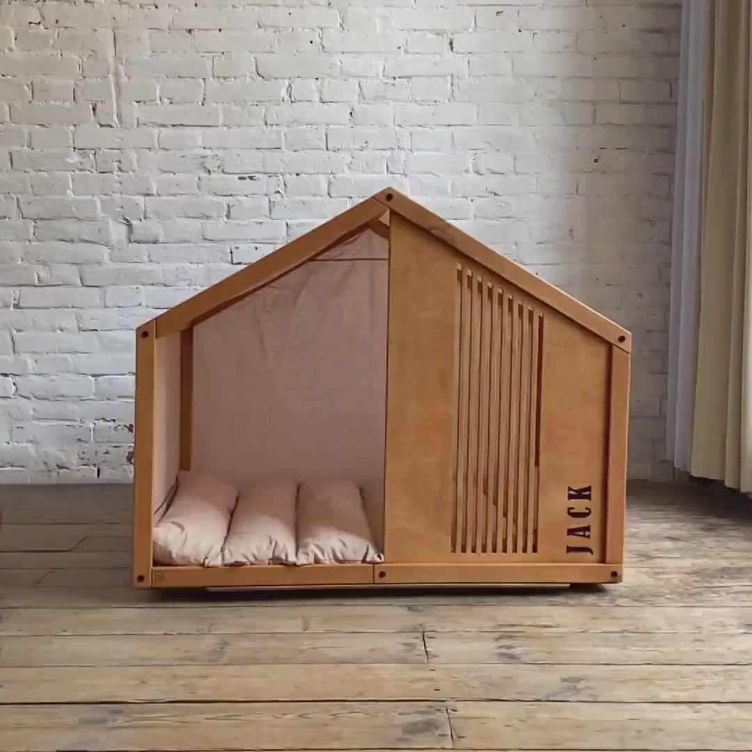 π Large Dog House β Stylish Indoor Dog Furniture with High Slats Cutout Panel and Cotton Fabric Cover offers your pet a spacious, cozy, and safe retreat. This large handmade dog house is crafted from premium plywood with bold High Slats cutout panels for ventilation and a soft cotton fabric cover for extra comfort. More than just a shelter, itβs a piece of stylish indoor dog furniture that blends artisan craftsmanship, durability, and modern design, making it a unique addition to your home dΓ©cor.