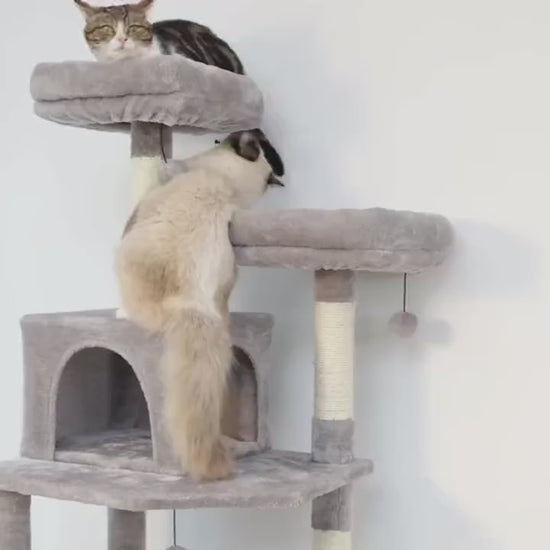 Solid Wood Cat Tree for Large Cats | Modern Wooden Cat Tower with Hammock & Condos | Minimalist Luxury Cat Furniture for Indoor Use